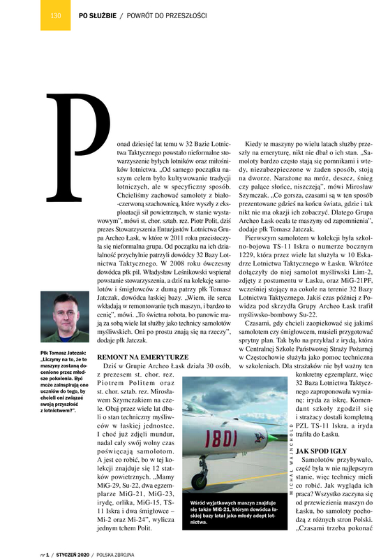 W styczniowym numerze miesięcznika Polska Zbrojna ukazał się artykuł poświęcony działalności Stowarzyszenia Entuzjastów Lotnictwa „Grupa Archeo Łask”.
