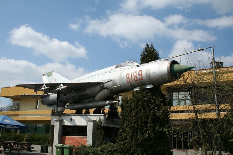 MiG-21MF nr fabryczny 96008189 n/b. „8189” został wyprodukowany w zakładach w Gorki w 1975 roku i dostarczony do Polski razem z 19 innymi samolotami. Wpisany na stan 34.PLM Gdynia Babie-Doły w grudniu tego samego roku. W trakcie eksploatacji był na stanie 11.PLM z Wrocławia. W 10.PLM w Łasku od marca 1982 – do stycznia 1989 roku. Przebazowany do BSP Mierzęcice w czerwcu 1998 roku i wystawiony na sprzedaż przez AMW. Do 2010 roku (sprzedany na Allegro) znajdował się w przy „Zajeździe Kruszyna” przy drodze nr 1 (E75) w m. Kruszyna.