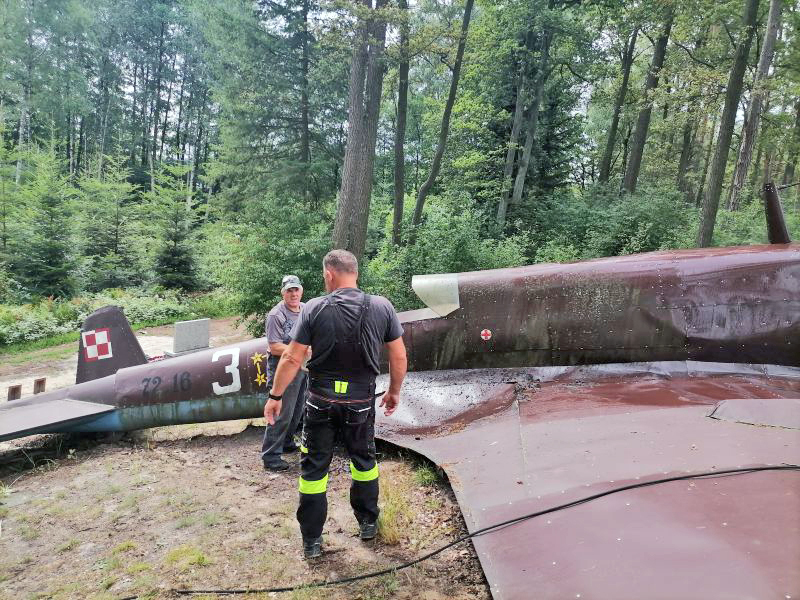 Niestety, po sześciu latach „Łoś” wymagał remontu. Warunki atmosferyczne, ale przede wszystkim „odwiedzający” to miejsce przyczynili się do jego dewastacji. Pogięte blachy pokrycia skrzydeł, wybite pleksi w kabinach, ubytki farby. Tak przedstawiał się stan, jaki zastali członkowie Grupy ARCHEO Łask, którzy stawili się rankiem 29-go sierpnia 2015 r. w lesie dłutowskim. Tego dnia postanowili dokonać małego remontu pomnika i uporządkować otoczenie. Pracę Grupy ARCHEO nadzorował naoczny świadek zestrzelenia Łosia w 1939 roku p. Karol GAWORA, natomiast bardzo dużej pomocy w pracach udzielili: firma Blachbud Bis Małgorzata Jaguszewska z Dłutowa, Adam Jaszczak, Marcin Mruk oraz firma DITRICH z Pawlikowic.